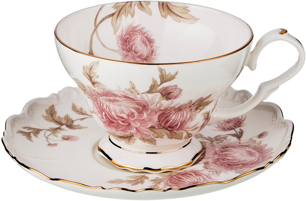 в жизни выглядит лучше, чем на фото. тонкий фарфор, очень легкий, нежный рисунок, а главное хотелось большую чашку для чая. Чашка вмещает 400 мл, для меня лично очень удобно. мне лично очень понравился набор, купила 6 чайных пар.