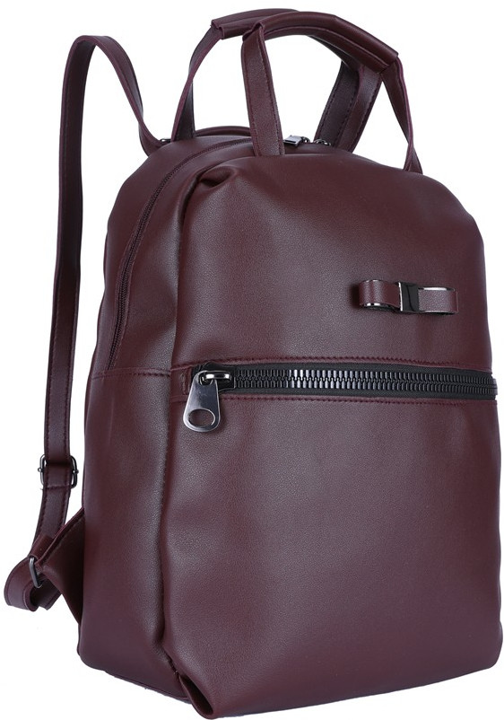 Женский рюкзак освобождает руки, с ним можно быстро и удобно передвигаться по всему городу, имея при себе все необходимое. Идеальный аксессуар для истинной горожанки, которая любит активный образ жизни и больше всего ценит стиль и комфорт. Такой рюкзак можно считать универсальным: его можно взять с собою на работу, в магазин, на прогулку, в кафе. Везде он будет уместным. Рюкзак с бантиком и молнией на кармане, одно отделение на молнии.