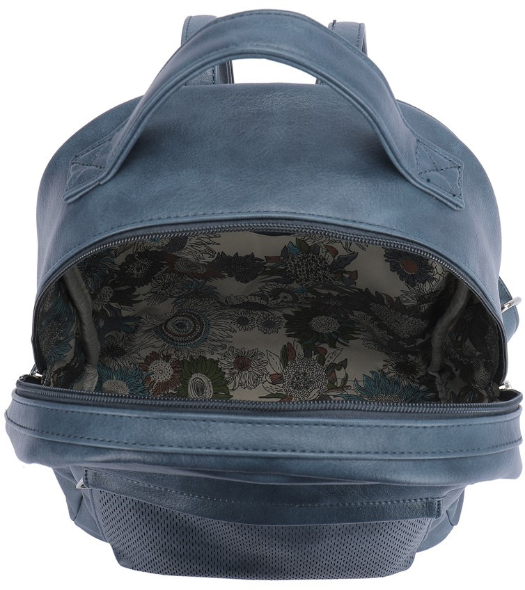 Рюкзак на молнии, имеет одно отделение, карман на молнии на передней стенке, 2 боковых кармана, карман на задней стенке на молнии. Внутри карман на молнии и карман для телефона.