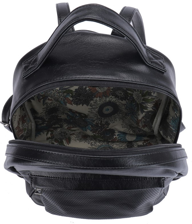Рюкзак на молнии, имеет одно отделение, карман на молнии на передней стенке, 2 боковых кармана, карман на задней стенке на молнии. Внутри карман на молнии и карман для телефона.