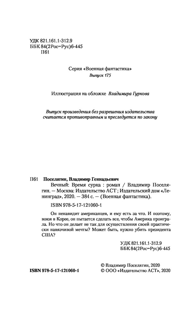 💳 Оплатить за товар можно при получении 🇰🇿 Есть бесплатная доставка по Казахстану от 1 дня 🎁 Копите бонусы с каждой покупки Серия: Военная фантастика Он ненавидит американцев, и ему есть за что. И поэтому, воюя в Корее, он пытается сделать все, чтобы Америка проиграла. Но что он делает не так для осуществления своей практически навязчивой мечты? Может быть, нужно убить президента США? |
