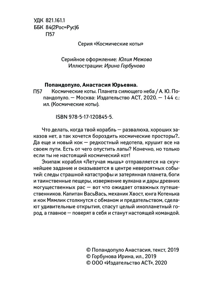 | Космические коты. Планета сияющего неба Анастасия Юрьевна Попандопуло
