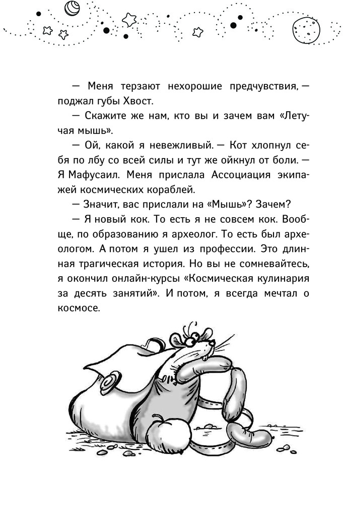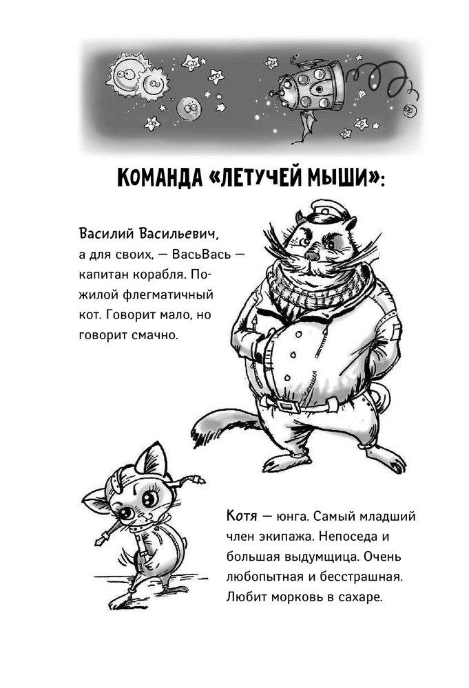 Экипаж корабля «Летучая мышь» отправляется на скучнейшее задание и оказывается в центре невероятных событий: следы страшной катастрофы и затерянная планета, боги и таинственные пещеры, извержение вулкана и дары древних могущественных рас — вот что ожидает отважных путешественников. Капитан ВасьВась, механик Хвост, юнга Котенька и кок Мямлик столкнутся с обманом и предательством, сделают удивительные открытия, спасут целый инопланетный город, а главное — поверят в себя и станут настоящей командой. |
