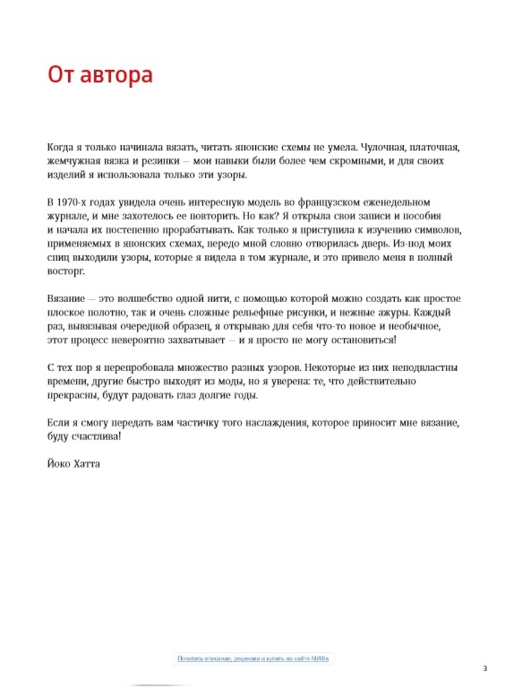 В 1970-е я увидела интересную модель в одном французском еженедельном журнале, и мне очень захотелось ее повторить. Но как это сделать? Я подняла свои справочники и постепенно связала ее (правда, работа шла очень медленно). Когда я приступила к изучению символов, которые используются в японских схемах, оказалось, что ларчик открывается очень просто. Я была в восторге, когда перед моими глазами представали те же узоры, что я видела в книге.
