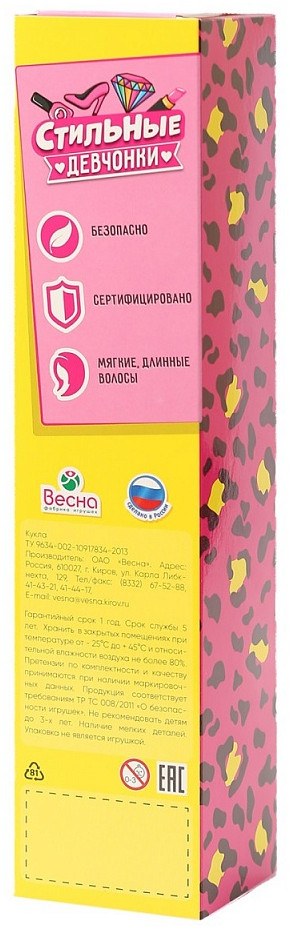 Сегодня на фабрике выпускают более тысячи видов разных игрушек, около половины из которых — это куклы. Любимые детьми куклы фабрики «Весна» отличаются добрым образом и продолжают светлые традиции российской кукольной школы.