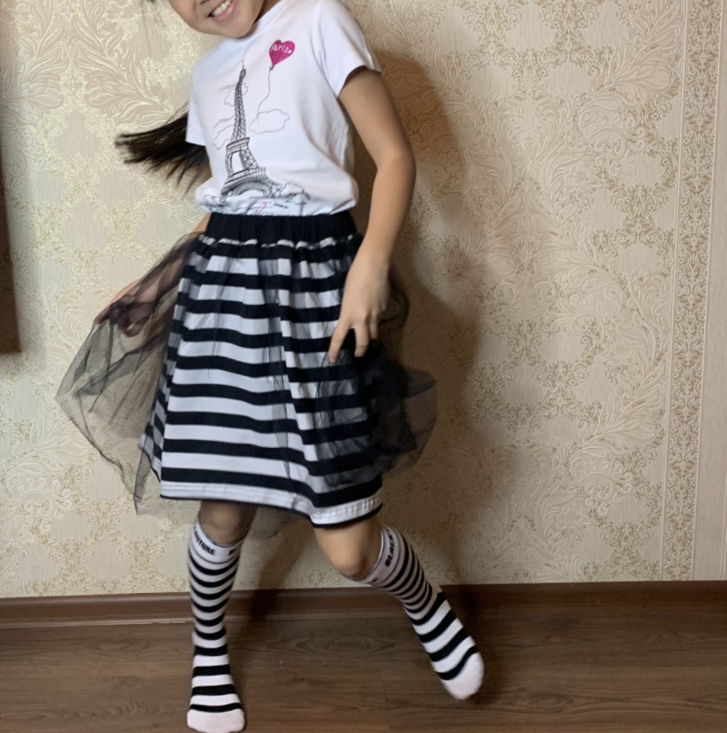 Взяли практически все вещи из этой коллекции: брюки, шорты, юбку, две футболки, кардиган, свитшот, гольфы и носки. Они прекрасно сочетаются между собой, доча в восторге. Очень стильный гардероб за очень демократичные цены. Спасибо, Flip. kz!