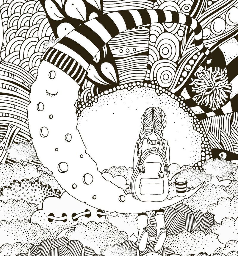 Раскраска вроде летняя, но на #4 странице девочка сидит на луне в сапогах. Очень странно.
