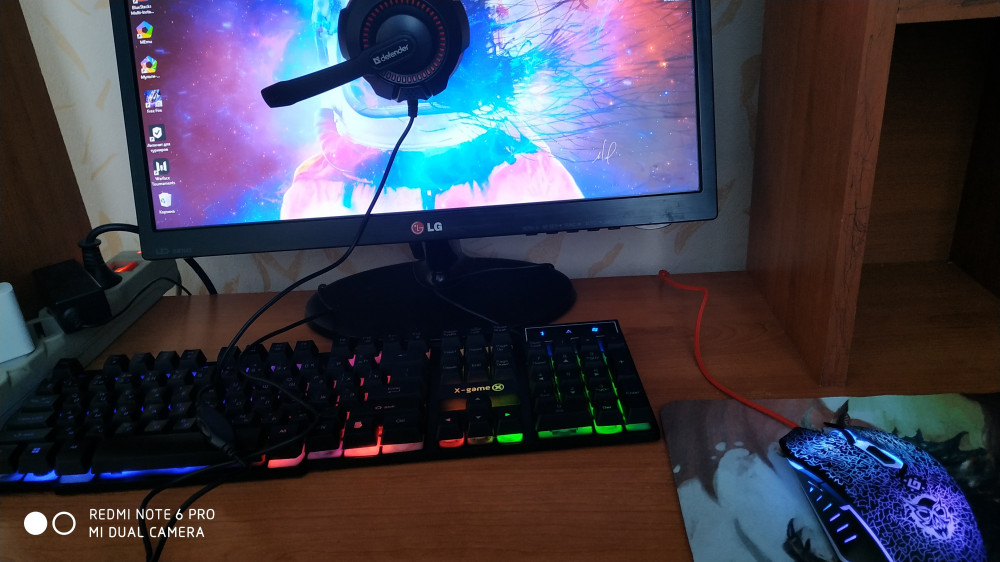 Мышь светится разными цветами. Наушники удобные, но не usb. Если нет разъема под микрофон, брать не советую. А так набор 👍🏻. Коврик большой.