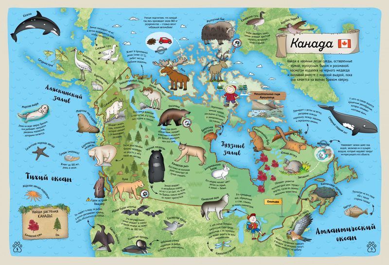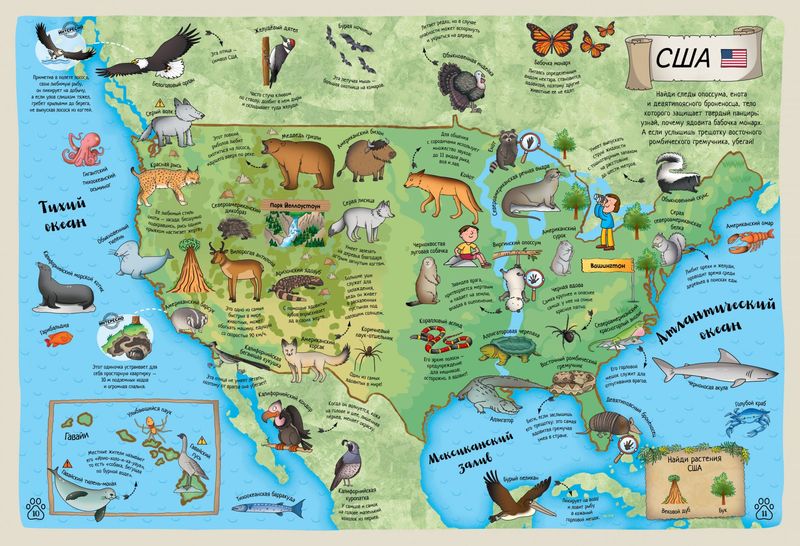 Разглядывайте яркие иллюстрации и узнавайте новое о мире животных! |