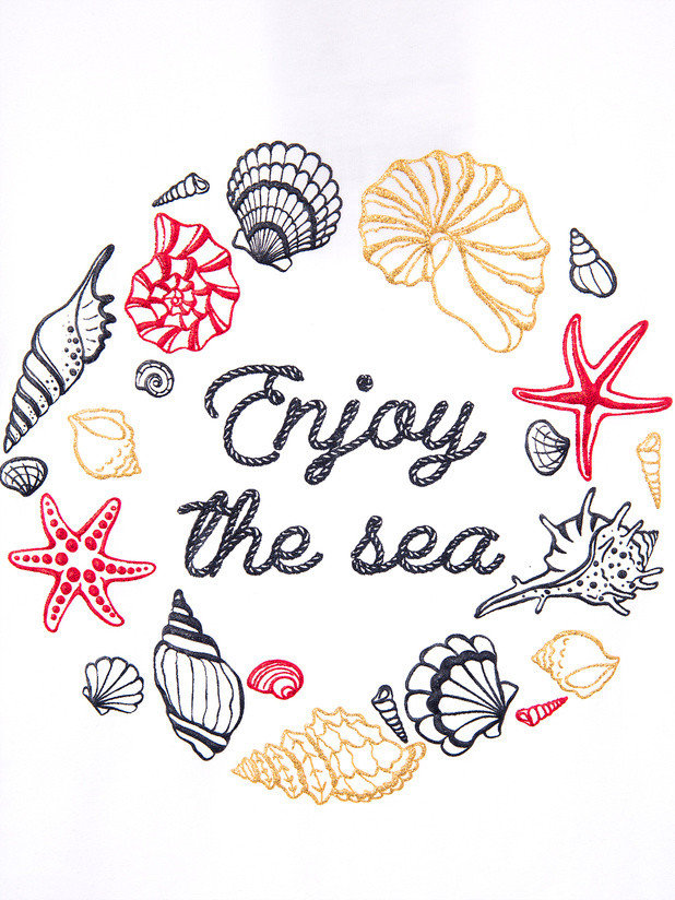 Белоснежная, с качественной вышивкой и апликацией. Дорогая и качественная футболка из колекции "круиз"