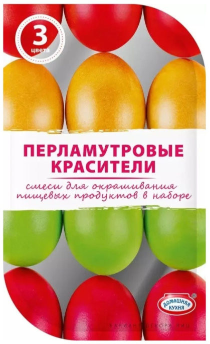 Домашняя кухня Красители пищевые «Перламутровые»В данный момент этот товар отсутствует в продаже. Возможно, у нас найдется аналогичный или похожий товар здесь. Серия: Три цвета Один из главных символов Пасхи — окрашенные яйца. Традиционно их красят в луковой шелухе, что придает яйцам символический красный цвет. Но так хочется, чтобы праздничный стол украшали не только красные, но и разноцветные, необычные, расписные крашенки. Самый простой способ — использовать пищевые красители для яиц. Набор пищевых красителей для яиц состоит из 3 цветов. |