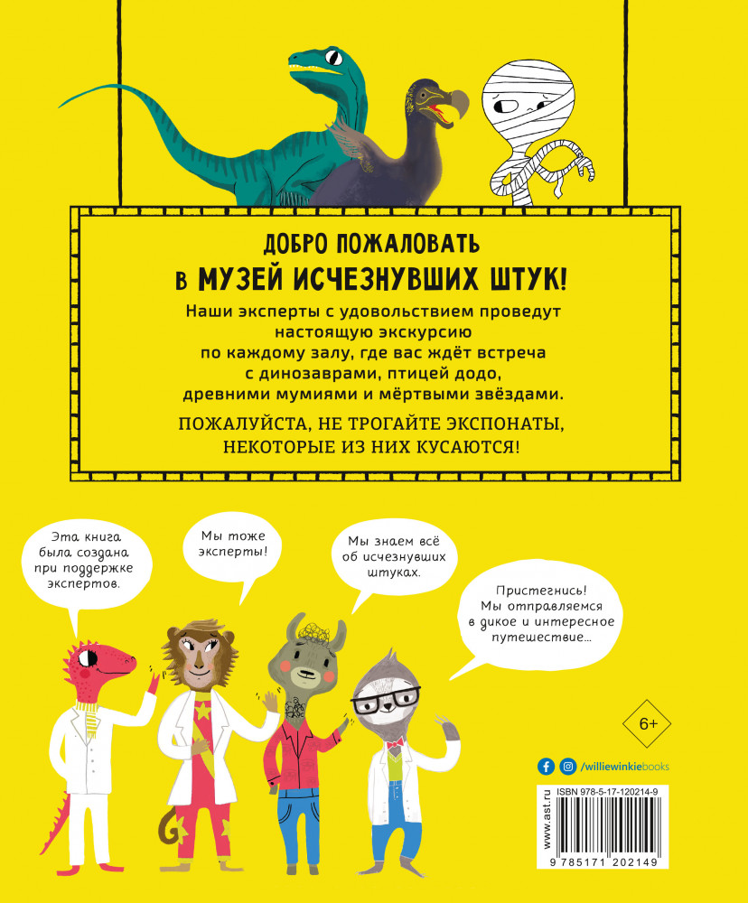 💳 Оплатить за товар можно при получении 🇰🇿 Есть бесплатная доставка по Казахстану от 1 дня 🎁 Копите бонусы с каждой покупки Серия: Лучшие книги о науке для детей Редакция «Вилли Винки» представляет! Добро пожаловать в музей древностей. Возле входа вас уже ждёт гид, у которого наготове миллион интересных фактов. Динозавры, птица Додо, древние египетские мумии и звёзды, которые погасли столетия назад. Пожалуйста, не трогайте экспонаты, некоторые из них могут укусить! Нэд Хартли пишет комиксы и книги для детей. В 2018 и 2019 годах он был автором ежегодников по вселенной Звёздных воин. Нэд живёт в Лондоне со своей семьёй. «Динозавры, мамонты и разные древности» — забавный путеводитель, из которого можно узнать обо всех вещах, которых уже давно нет на свете. Настоящий научный комикс для самых маленьких. |