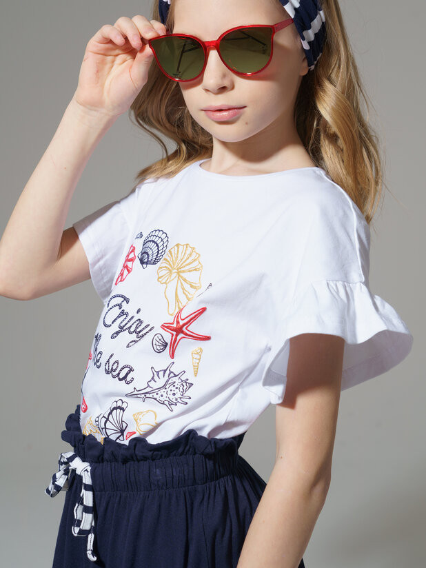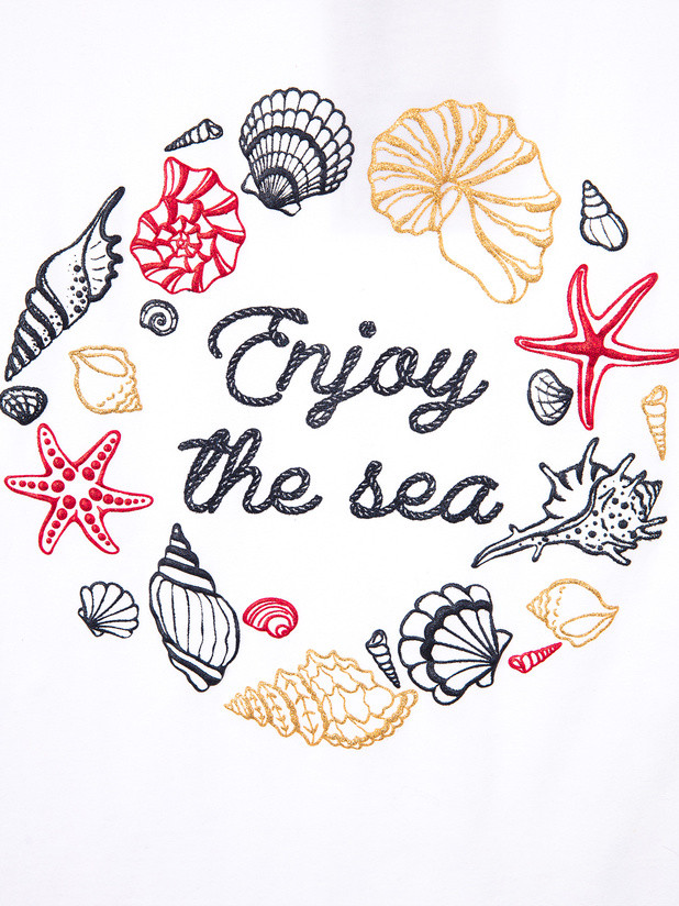 Белоснежная, с качественной вышивкой и апликацией. Дорогая и качественная футболка из колекции "круиз"