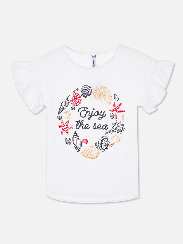 Прошлым летом скупила почти всю коллекцию «Seascape kids girls», эту футболку упустили. Очень качественная вещь. Отлично подходит к другим вещам из этой серии. Рекомендую. В живую еще лучше, чем на картинке.