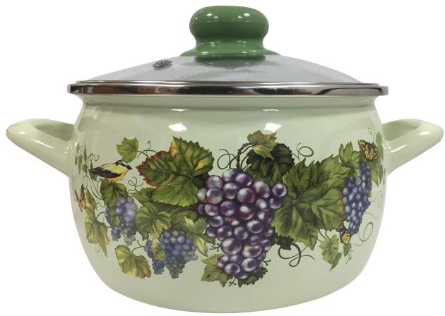 Кастрюля «Виноград» имеет красочный и современный дизайн, благодаря чему даже самые изысканные вкусы хозяек будут удовлетворены, а интерьер кухни заиграет новыми красками. Отличается высоким качеством эмалевого покрытия, удобна в эксплуатации и проста в уходе. В качестве материала изготовления используется высококачественная сталь. Этот металл повсеместно применяется в производстве кухонной посуды, благодаря долговечности и устойчивости к образованию царапин и трещин. Эмалированная сталь, даже под воздействием высоких температур, не вступает в реакции с, содержащимися в продуктах, кислотами и щелочами, что способствует максимальному сохранению полезных веществ и микроэлементов.