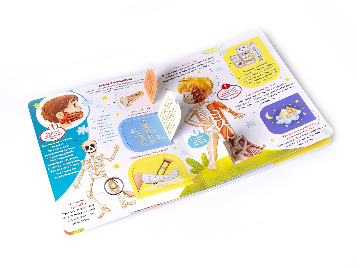 Книжка с окошками «Как устроен человек?» создана, чтобы ответить на вопросы детей об анатомии человека. Яркие картинки и познавательные факты помогут познакомить малыша со строением тела и органов.