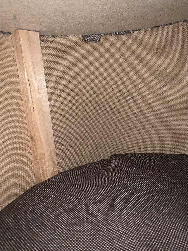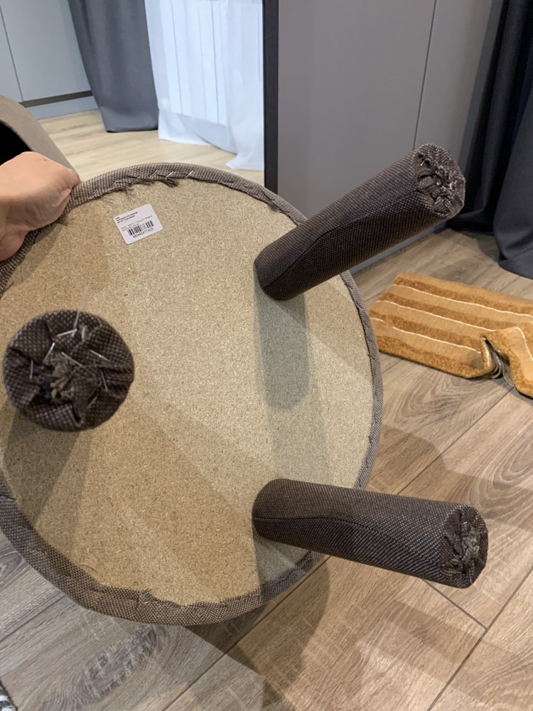 Домик собран очень кустарным образом. Обивка в некоторых местах просто приклеена, без использования скоб. На момент распечатки часть обивки отверстия просто отклеилась. Внутри домика стенки никаким образом не покрыты, только дсп. Ножки обиты тканью, при этом снизу нет никакой заглушки, все швы и скобы наружу при этом в очень плохом качестве. За такие деньги домик совершенно не соответствует качеству. Ожидания совершенно не оправдались. Однозначно не рекомендую покупать данное изделие