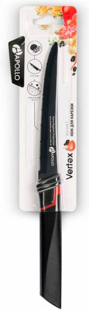 Apollo Нож для нарезки «Vertex»В данный момент этот товар отсутствует в продаже. Возможно, у нас найдется аналогичный или похожий товар здесь. Серия: Vertex Нож предназначен для очистки овощей и фруктов, нарезки мяса, рыбы, колбас, хлеба и других продуктов. Лезвие ножа Vertex имеет стойкое покрытие, которое уменьшает контакт продуктов со сталью, предотвращая процесс окисления и помогая сохранить полезные свойства продуктов. Специальная форма рукоятки не позволяет ножу выскальзывать из руки во время использования. Лезвие ножа для нарезки имеет специальную серрейторную заточку, которая идеально подходит для нарезки спелых овощей и фруктов, а также других мягких и нежных продуктов. Использование этого ножа позволяет быстро разрезать твердую кожицу овощей и фруктов, не повреждая при этом спелую мякоть. Лезвие с серрейторной заточкой остается острым долгое время. |