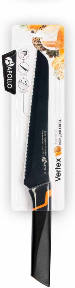 Apollo Нож для хлеба «Vertex»В данный момент этот товар отсутствует в продаже. Возможно, у нас найдется аналогичный или похожий товар здесь. Серия: Vertex Нож Apollo «Vertex» идеально подходит для нарезки хлеба всех сортов, овощей и других продуктов. Лезвие ножа изготовлено из нержавеющей стали.Уникальная технология двойного закаливания лезвия и оригинальный дизайн сделают такой нож отличным кухонным помощником. |