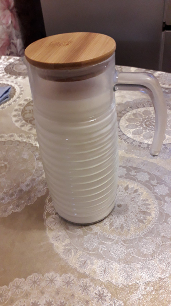 Простой,очень удобный,симпатичный,легкий кувшин-графин.В холодильнике занимает мало места. Крышка прилегает плотно.Покупала для молока.Доставлено в наилучшем виде,спасибо сотрудникам магазина.