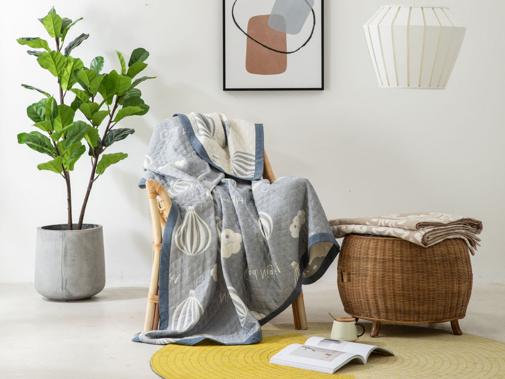 Покрывало 100 % хлопок, стеганое, двустороннее. Отлично подойдёт в качестве легкого покрывала летом. Спасибо Flip, заказом довольна.