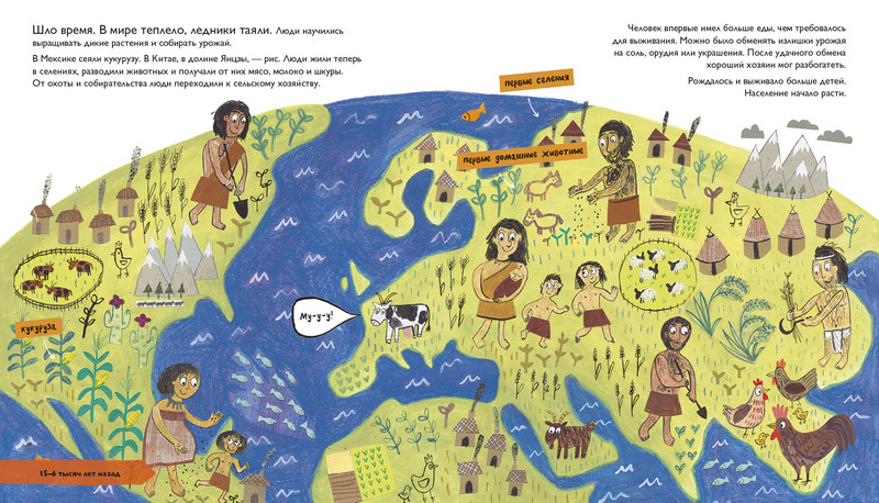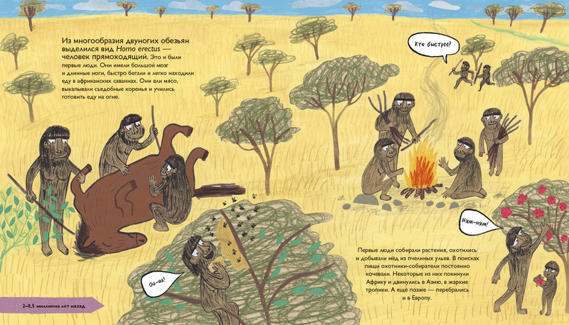 Учёные и педагоги Кэтрин Барр и Стив Уильямс объясняют историю эволюции человека понятно даже дошкольнику и при этом в соответствии с современными научными представлениями. А иллюстратор Эйми Хасбанд рисует доисторических людей и их предков и потомков с иронией и нежностью.