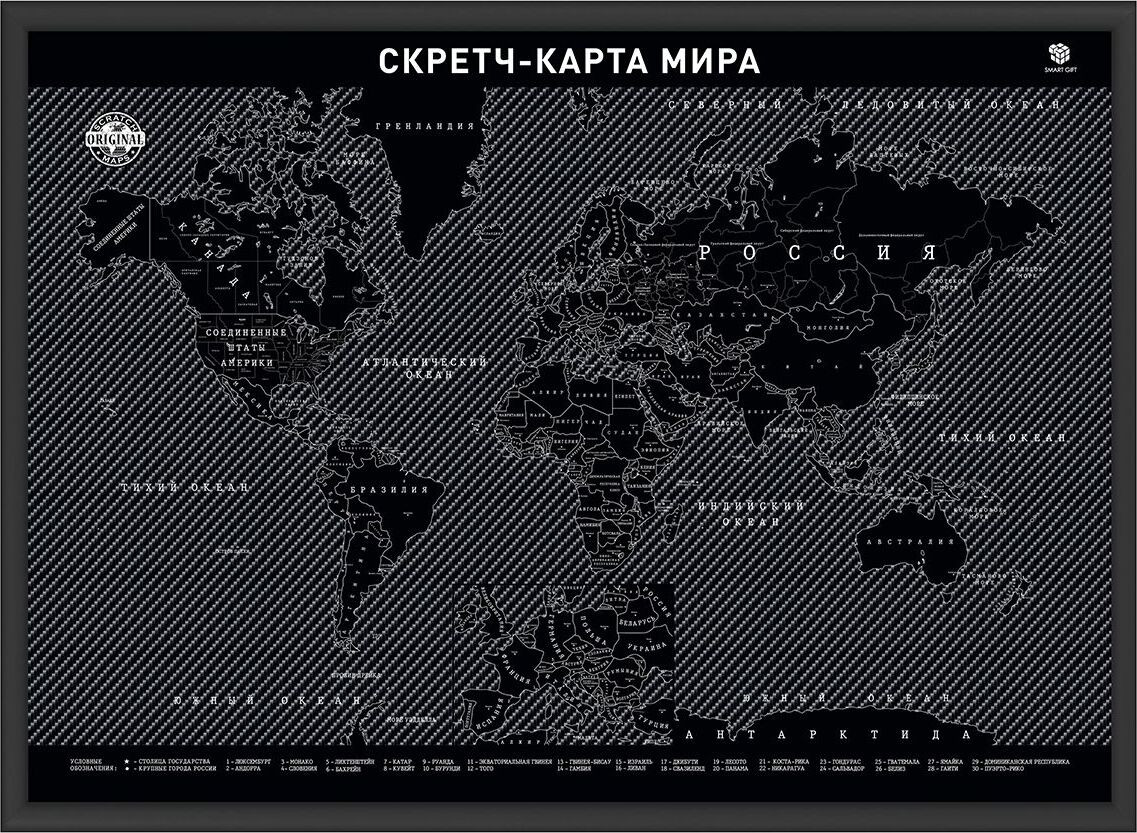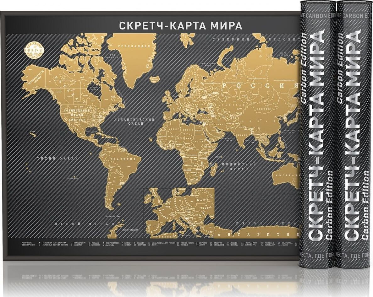 Умный подарок Скретч-карта мира «Carbon Edition»В данный момент этот товар отсутствует в продаже. Возможно, у нас найдется аналогичный или похожий товар здесь. Скретч-карта Мира в карбоновом оформлении. Карта Мира полностью черного цвета с карбоновым эффектом, покрытая золотой, стирающейся скретч-краской в стильном карбоновом тубусе с металлическими крышками. Стильная и оригинальная карта мира с высокой детализацией регионов России подарят самые позитивные эмоции получателю Скретч-карты мира. |