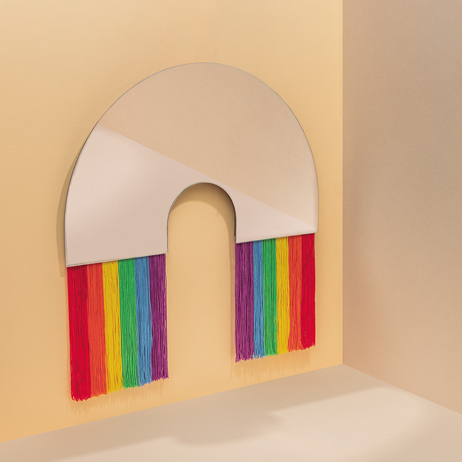 Настенное зеркало «Rainbow» с яркими тканевыми полосками станет оригинальным украшением современного интерьера. Аксессуар придаст дому красок и поднимет настроение даже в самый хмурый день! Идеально подходит для гостиной, спальни или детской.