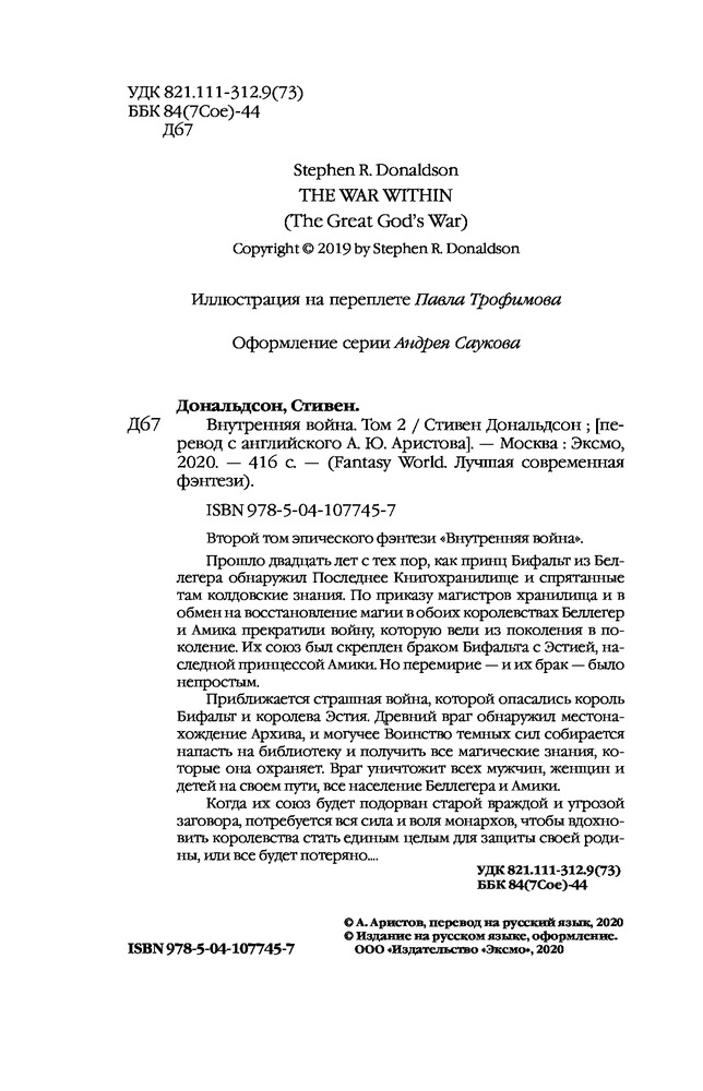 💳 Оплатить за товар можно при получении 🇰🇿 Есть бесплатная доставка по Казахстану 🎁 Копите бонусы с каждой покупки Серия: Fantasy World. Лучшая современная фэнтези Второй том эпического фэнтези «Внутренняя война». |