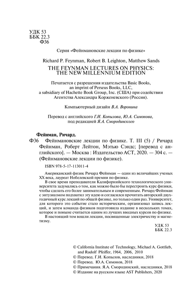 💳 Оплатить за товар можно при получении 🇰🇿 Есть бесплатная доставка по Казахстану от 1 дня 🎁 Копите бонусы с каждой покупки Серия: Фейнмановские лекции по физике В свое время преподаватели Калифорнийского технологического университета задумались о том, как можно было бы перестроить курс физики, чтобы сделать его более занимательным и современным. Ричард Фейнман с энтузиазмом подхватил эту идею и согласился прочитать авторский двухгодичный курс лекций по общей физике, но только один раз. Университет, для которого это событие стало историческим, организовал запись лекций, и затем команда физиков подготовила издание в нескольких томах, которое и поныне считается одним из лучших вводных курсов по физике. В настоящий том вошли лекции, посвященные электричеству и магнетизму. |