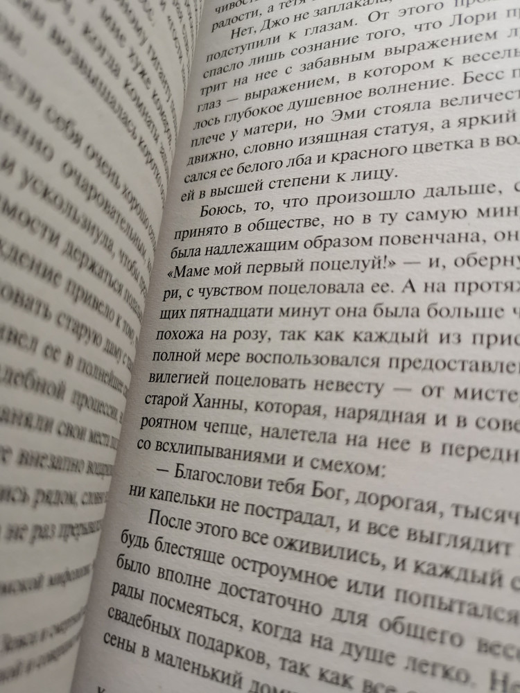Само продолжение книги интересное и такое же тёплое, уютное при чтении. Но! в данной книги печать более мелкая это раз и тусклая поэтому читать не удобно. В первой книге " Маленькие женщины" такого нюанса не было, шрифт крупный и печать четкая. А вообще советую эту историю всем девушкам, которые любят лёгкое чтиво🌸
