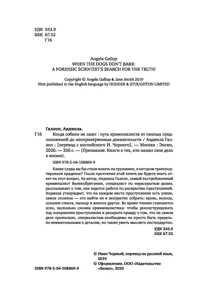 💳 Оплатить за товар можно при получении 🇰🇿 Есть бесплатная доставка по Казахстану от 1 дня 🎁 Копите бонусы с каждой покупки Серия: Призвание. Книги о тех, кто нашел свое дело в жизни Какие следы вы бы стали искать на грузовике, в котором транспортировали краденое? После прочтения этой книги вы будете знать ответ на этот вопрос. Ее автор, Анджела Галлоп, самый востребованный криминалист Великобритании, специалист по нераскрытым делам, рассказывает о том, как ведется работа по раскрытию преступлений. Анджела утверждает, что на каждом месте преступления есть улики, самое сложное — это найти их и аккуратно собрать: кровь, ДНК, осколки стекла, пыльцу и многое другое. Во время чтения становится ясно, насколько сложна криминалистика: чтобы реконструировать ход совершения преступления и раскрыть правду о том, что на самом деле произошло, специалистам необходимо не просто быть предельно внимательными к деталям, но также уметь мыслить нестандартно. |