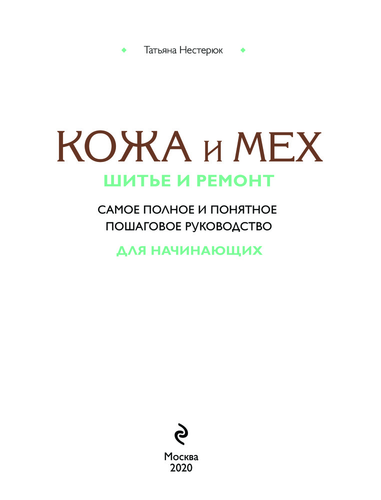 | Кожа и мех. Шитье и ремонт. Самое полное и понятное пошаговое руководство для начинающих Татьяна Нестерюк