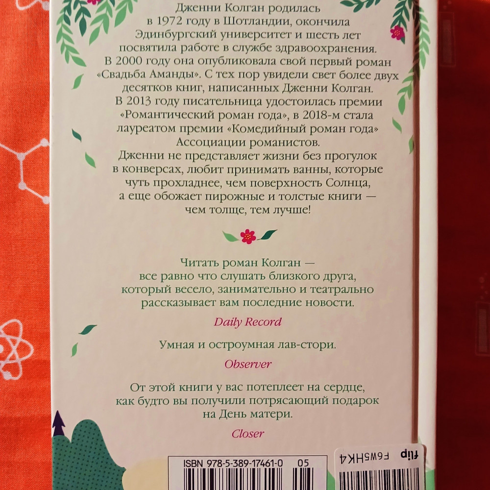 «Книжный магазинчик счастья», Дженни Колган (“The Bookshop on the corner”, Jenny Colgan) 📚🚌🚂🏡💘 Количество страниц: 448 Как же я люблю эту книгу! В 2021-м году, летом, я уже слушала её в аудио версии (она есть у меня на “Litres”). Тогда я пообещала себе, что обязательно приобрету печатное издание этого произведения. Захотелось иметь её в своей библиотеке. Так оно и получилось. Было также интересно, как я снова буду её воспринимать, но оказалось, что у меня совершенно одинаковое восприятие и когда слушаю книгу и когда её же читаю. Я нисколь не разочаровалась. Душевно написано, с любовью к книгам. Очень мне это откликается. Из всех авторов уютных женских романов Дженни Колган, пожалуй, самая любимая. Здесь можно брать книги себе на вооружение – что почитать. Упоминается очень много интересных названий и авторов. Раскрывается тема отношения нынешнего общества к книгам, создания мультимедийных центров на базе классических библиотек, говорится о том, что нет той сакральности по отношению к печатным изданиям, какая была раньше. Довольно серьёзная тема, учитывая, что в наше время весь мир сидит в телефонах. Было также очень приятно снова встретиться со скромным библиотекарем Ниной Редмонд и фермером Джоном Ленноксом. Полюбились мне эти герои, а Леннокс просто идеальный мужчина. Немногословный, надёжный, работящий и, как бонус, с красивой, мужественной внешностью. Нина же исполнила все свои мечты, сама того не ожидая. И в карьере и в личной жизни, совершенно её поменяв. Восхищаюсь! Несмотря на то, что хорошо помню содержание, всё же какие-то детали подзабылись, например, уютность фургона или потрясающие виды Шотландии. История обволакивает, будто растворяешься в книге, и оставляет приятное послевкусие. Здоров было бы, если бы по этому роману когда-нибудь поставили бы фильм. Несколько понравившихся мне цитат и описаний: «Давайте читать и давайте танцевать, эти два развлечения никогда не причинят миру зла». Вольтер «Проблема с хорошими вещами состоит в том, что они очень часто маскируются под вещи ужасные. И разве не было бы чудесно, если бы в тот момент, когда вы одолеваете какие-то трудности, кто-то просто хлопнул бы вас по плечу и сказал: – Не беспокойся, оно того стоит! Сейчас это выглядит просто жуткой дрянью, но я обещаю: в конце все будет хорошо! А вы бы воскликнули: – Спасибо, добрая фея! И вам бы ответили: – Да не за что, детка! Да, это было бы полезно, но такого не случается, и поэтому мы иногда слишком долго пробираемся через то, что не приносит нам счастья, или чересчур быстро отступаем к чему-то более реальному, и нередко невозможно точно определить, что лучше, а что хуже». «День уже почти закончился, но солнце все еще стояло высоко в небе – здесь оно садилось намного позже, чем в Бирмингеме, – и ярко светило в окно по левой стороне автобуса, к которому прислонилась Нина, когда они проезжали по мосту Форт-Роуд. Его лучи окрашивали в розовый цвет воды залива, и на мгновение у Нины возникло ощущение, что автобус плывет сквозь белые кружева». «Когда они подъезжали к Эдинбургу, Нина ощущала густой, роскошный, будоражащий запах древних серых улиц, видела старинные булыжные мостовые, на которые хотелось тут же спрыгнуть. А еще здесь было металлическое небо, отражавшееся в окнах высоченных домов, самых древних небоскребов на земле. Все это заставляло ее выпрямиться и зач