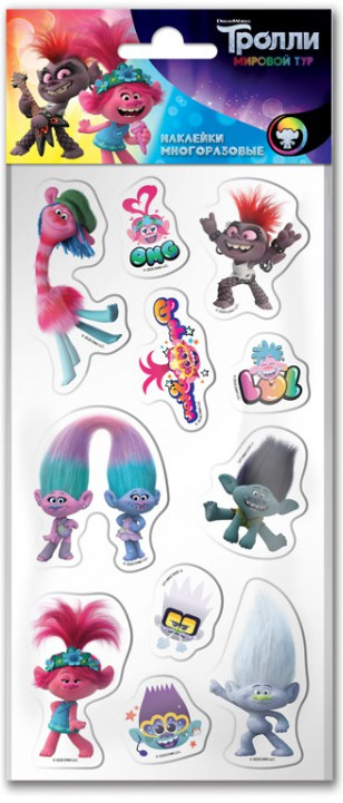 Серия: Тролли Новая серия наклеек «Тролли. Мировой тур» — это восемь наборов красочных многоразовых наклеек с изображением любимых героев. Собери всю коллекцию! |