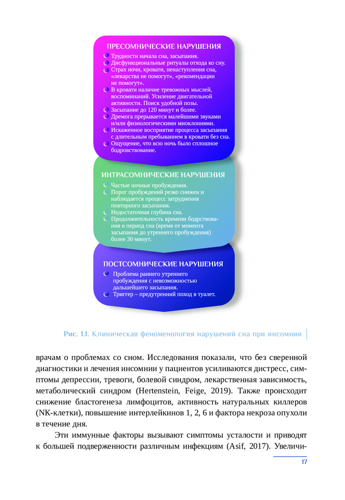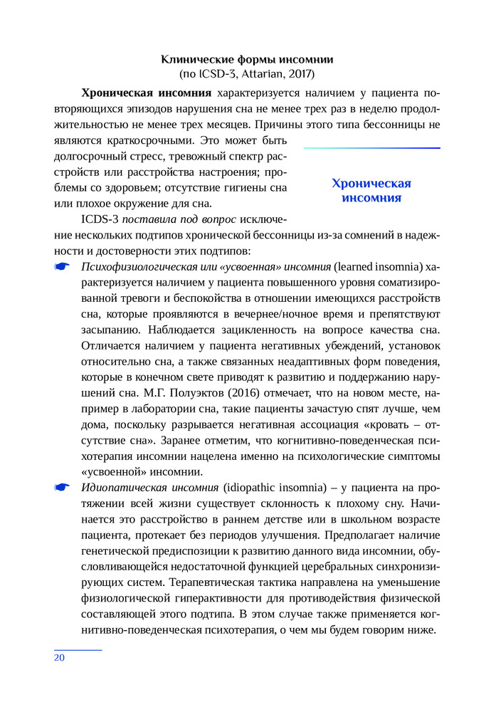 В основе данного руководства лежат принципы персонализированной поведенческой медицины сна, которая основана на предположении, что уникальные биопсихосоциальные характеристики человека играют важную роль в развитии той или иной траектории течения нарушений сна, а также построении эффективной тактики лечения. Приводятся методики и алгоритмы клинико-психологической диагностики различных нарушений сна.