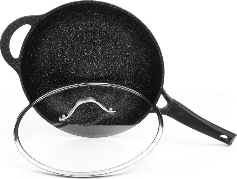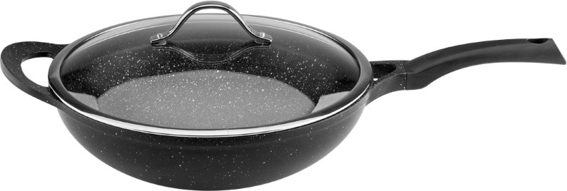 Vinzer Сковорода-вок с крышкойВ данный момент этот товар отсутствует в продаже. Возможно, у нас найдется аналогичный или похожий товар здесь. Серия: Premium Granite Induction Дно сковороды-вок быстро нагревается до высокой температуры, а стенки у верхнего края посуды разогреваются гораздо медленнее и не очень сильно. Из-за этой особенности сковороды типа вок отлично подходят для жарки и приготовления блюд азиатской кухни. Прибор имеет трехслойное антипригарное покрытие Granite, изготовленное на основе экологически чистой гранитной крошки. Ручки сделаны из термостойкого прочного пластика — бакелита. Они практически не нагреваются и сковороду можно снимать с конфорки голыми руками, не опасаясь ожога. |