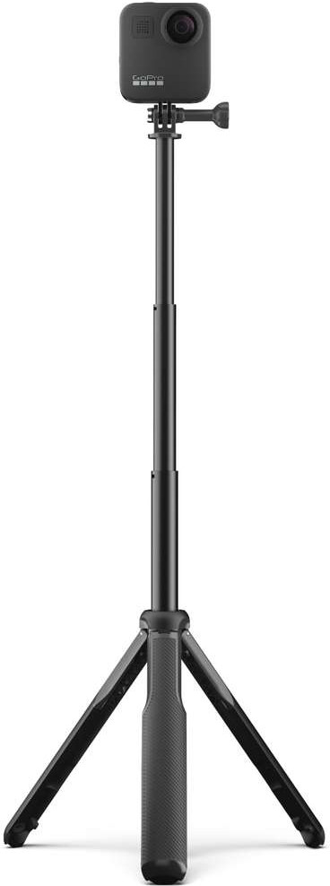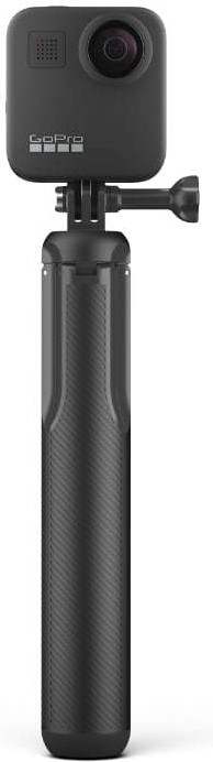 Рекомендуется купить телескопический монопод-штатив MaxGoPro ASBHM-002 и любителям, и профессиональным операторам, которые задействуют в работе камеру GoPro Max. В сложенном виде длина аксессуара немного больше 20 см, а значит, легко помещается в рюкзак, что ценно для операторов, работающих на разных локациях и путешественников. В разложенном — 56 см. Для фиксации камеры предусмотрен переходник-площадка в комплекте.