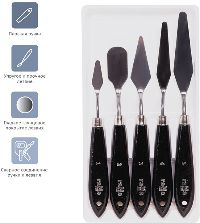 💳 Оплатить за товар можно при получении 🇰🇿 Есть бесплатная доставка по Казахстану от 1 дня 🎁 Копите бонусы с каждой покупки Серия: Студия Набор мастихинов для профессиональных художников. Предназначены для художественных работ масляными и акриловыми красками. Выполнены из нержавеющей стали, кованные, с ручкой из натурального дерева. Удобная коробка для хранения. |