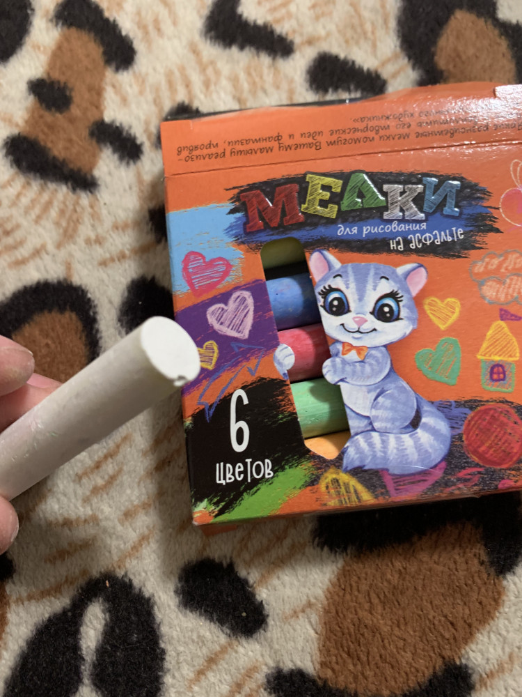 Мелки мягко рисуют, ребенку удобно держать в руке, небольшого размера, нажим руки средний, 6 цветов оставляют яркие линии. Стираются с руки относительно неплохо, легко разбить их, если уронить, это как и у других