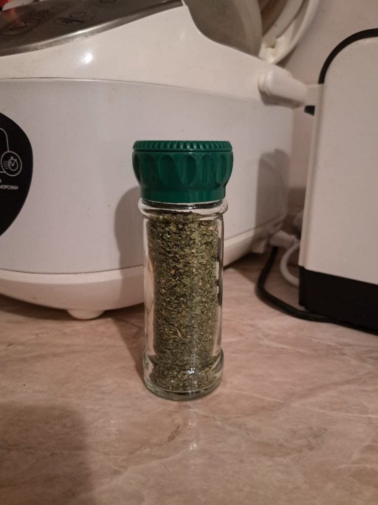 Действительно, отличная баночка для специй. Приготовила ее для трав. Сама из стекла, крышка имеет удобные отверстия и крутится.