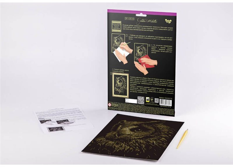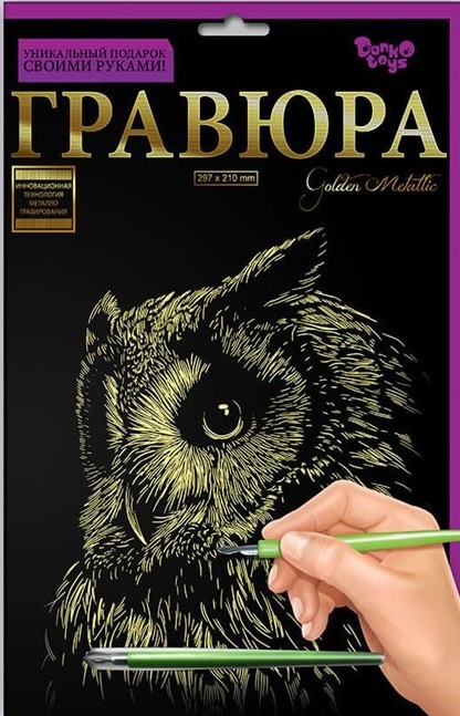 Danko Toys Гравюра с эффектом золота «Сова»В данный момент этот товар отсутствует в продаже. Возможно, у нас найдется аналогичный или похожий товар здесь. Серия: Гравюра Изготовление гравюр — это великолепный и утончённый вид творчества, а также занимательное, полезное и интересное занятие. Техника создания гравюры уникальна и проста, позволяет получить эффектное изображение, просматривая ретроспективу которой невольно восторгаешься как с помощью всего лишь простой чёрной линии, контурного штриха или пятна получается передать богатство предметного или живого мира, передать воздушность облаков, выразить блеск глаз или воды. Этот вид графического искусства возник ещё в древности и был доступен лишь мастерам, а сейчас мы постарались максимально упростить процесс творчества, чтобы дети смогли развить и раскрыть в себе свои способности и таланты! |