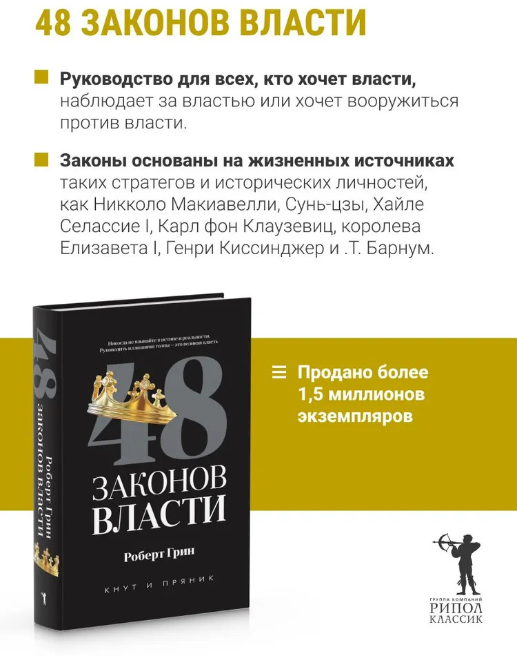 Почти прочитал мне понравилось как автор рассказывает о законах власти и подкрепляет их историями из жизни 10/10
