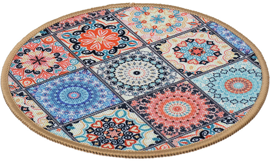 Очень удобный прорезиненный материал, расцветка в стиле пэчворк