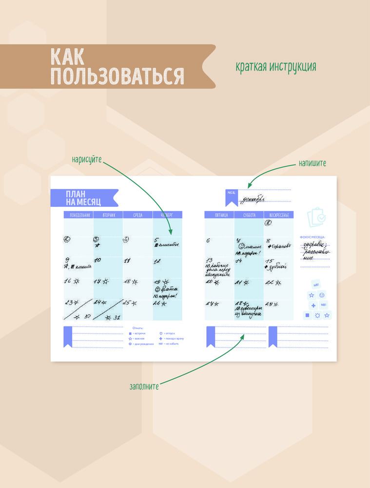 Wellness planner: ваш личный коуч на пути к успеху, здоровью и гармонииВ данный момент этот товар отсутствует в продаже. Возможно, у нас найдется аналогичный или похожий товар здесь. Серия: Мифоеды Этот планер поможет вам не только грамотно организовать время: с ним вы научитесь совмещать рабочие дела с заботой о доме и, главное, о себе. Внутри вы найдете таблицы планов на квартал, месяц, неделю и день, которые помогут отслеживать соблюдение полезных привычек, заботу о своем здоровье и будут напоминать, когда нужно расслабляться. А мотивирующие цитаты автора помогут достигать поставленных целей и смело ставить новые. |