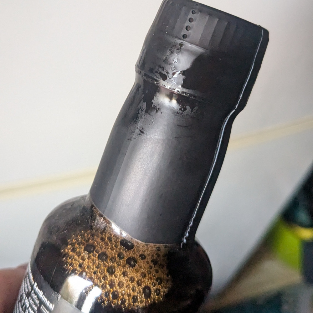 Соус был протекший,при чем из под запайки. Крышка нормально,текло из под нее,брак. упаковка и бутылка была в соусе. Но соус вкусный. Оценку не снижаю. Но возможно была бракованная партия с непритертыми крышками.