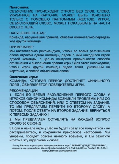 Piatnik Игра "Активити Турбо" для детейВ данный момент этот товар отсутствует в продаже. Возможно, у нас найдется аналогичный или похожий товар здесь. Во время игры нужно показать умение быстро мыслить. |