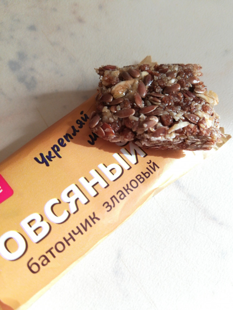 Батончики питательные, но не для тех, кто следит за фигурой - углеводов много, белков мало. То ли вкус льна такой, то ли батончик залежался, но слегка горчило. На любителя.