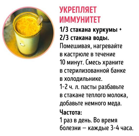 Куркуму использую в приготовлении различных блюд и во время осенне-зимнего периода, когда учащаются простудные заболевания, разные гриппы, ОРВИ. Вместе с мёдом, имбирём, лимоном отлично помогает справляться с этими проблемами, так же для профилактики. Благодарю Flip и все службы за предоставленный сервис.