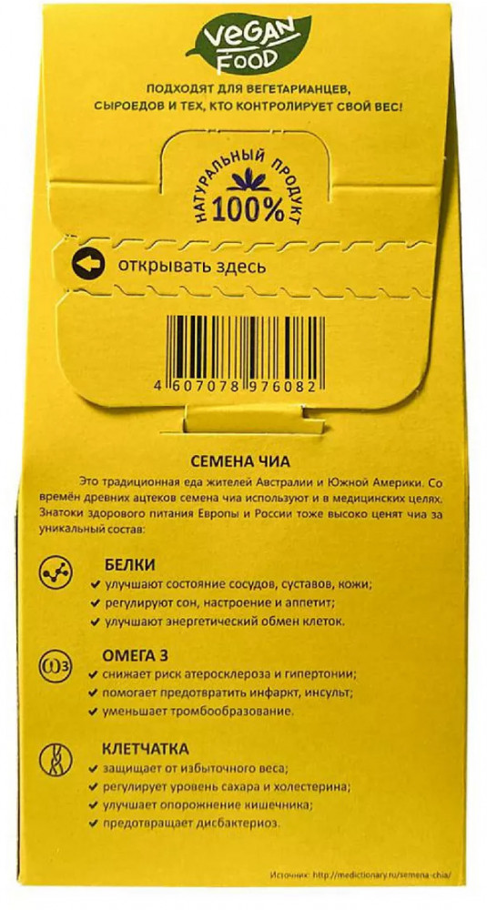 Семена чиа — это традиционная еда жителей Австралии и Южной Америки. Со времён древних ацтеков семена чиа используют и в медицинских целях. Знатоки здорового питания Европы и России тоже высоко ценят чиа за уникальный состав. |
